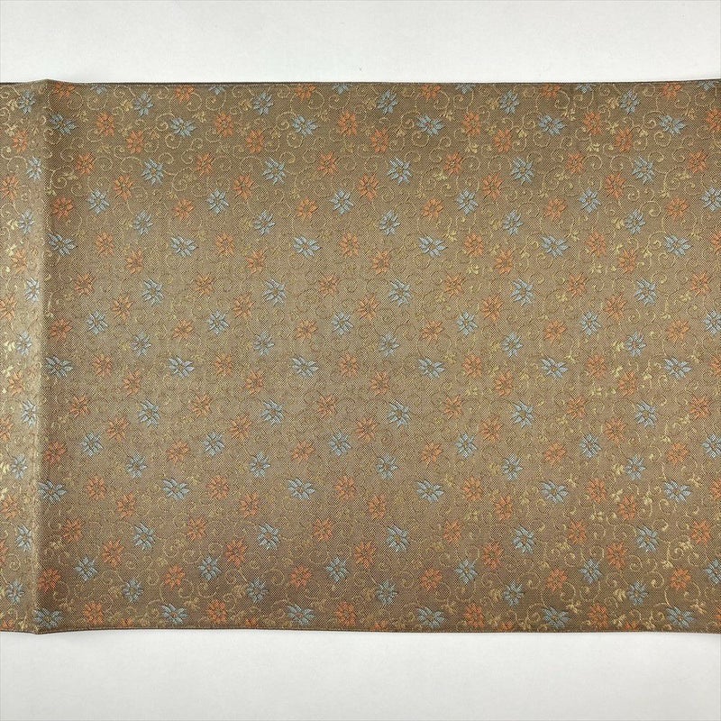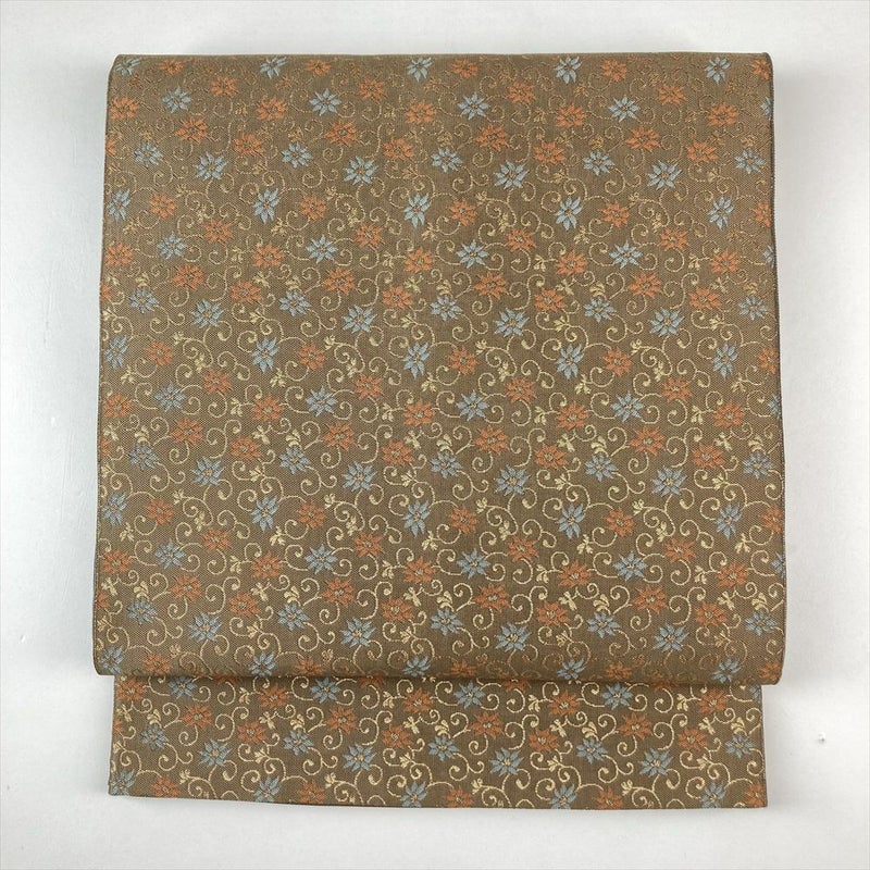 (中古)京袋帯 茶 カジュアル 六通柄 金糸 花唐草