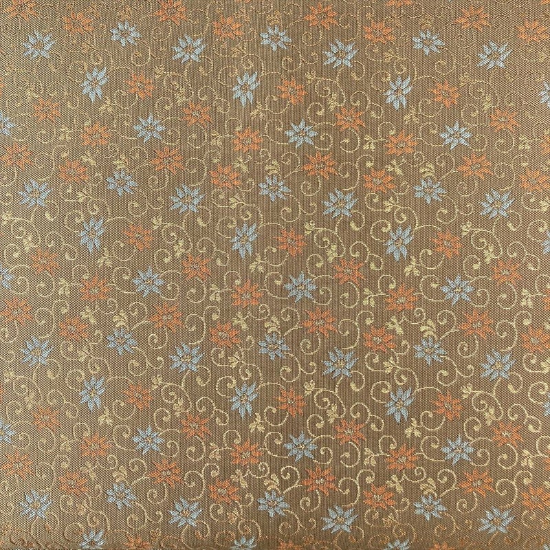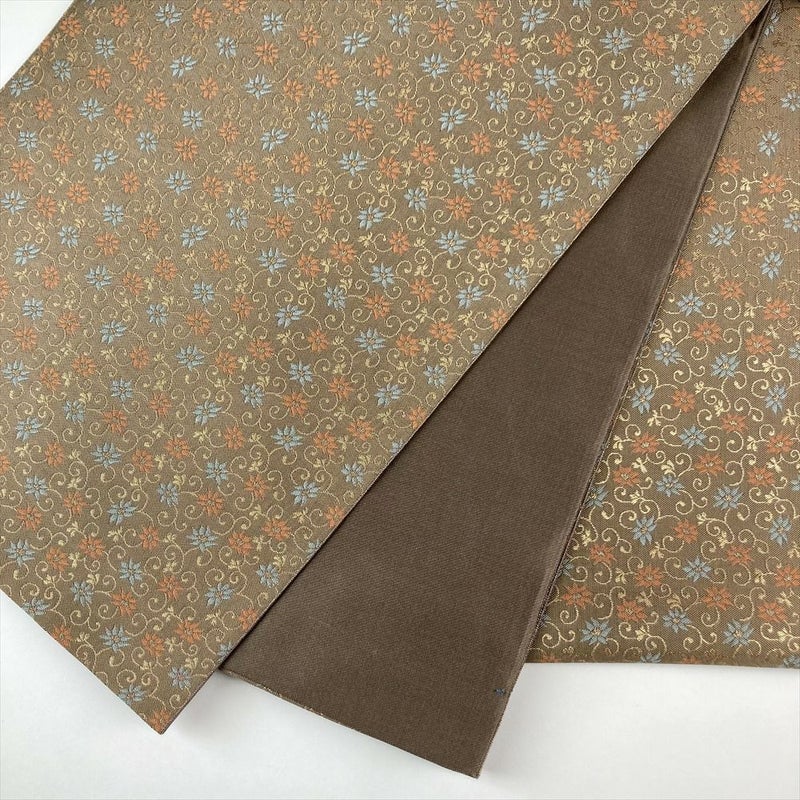 【色柄】茶 カジュアル 六通柄 金糸 花唐草