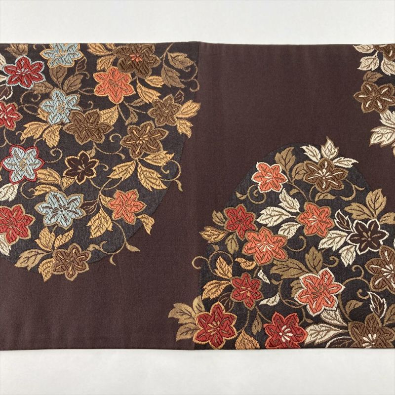 (中古)京袋帯 焦げ茶 カジュアル セミフォーマル 六通 織り 鉄線花 ポリエステル