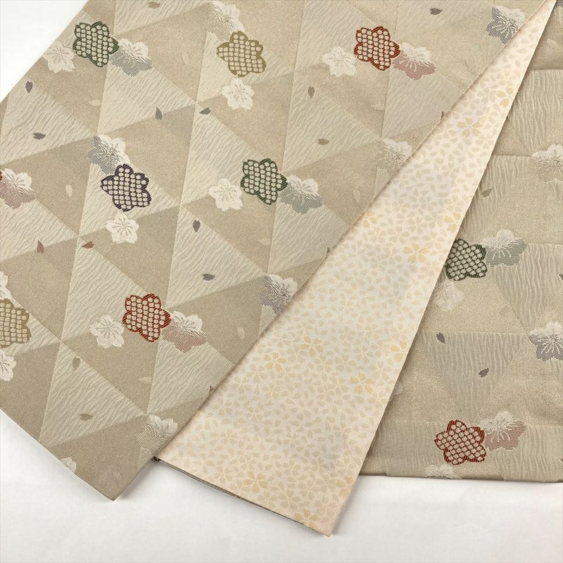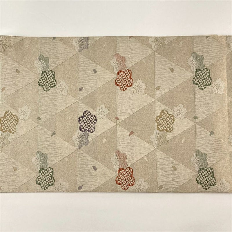 (中古)京袋帯 ベージュ カジュアル 桜 鱗 鹿の子
