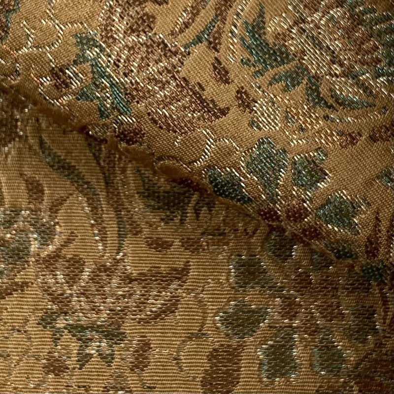 【色柄】桑茶色 カジュアル 横段 オリエンタル 織り 金糸 六通