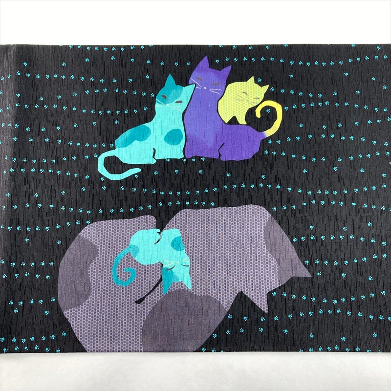 自由な発想で描かれたWakkaブランドの猫が目を引く、染めの京袋帯です。