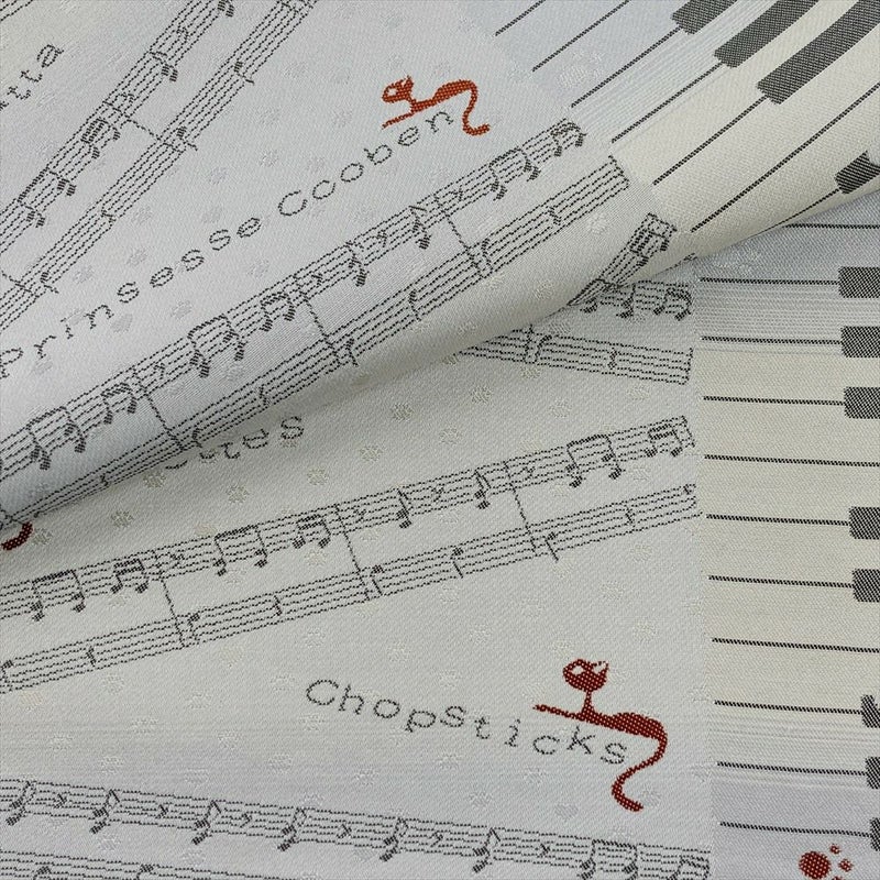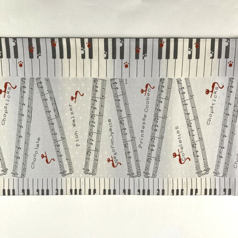 【色柄】白鼠 グレー カジュアル 鍵盤に音符 猫 織り 六通