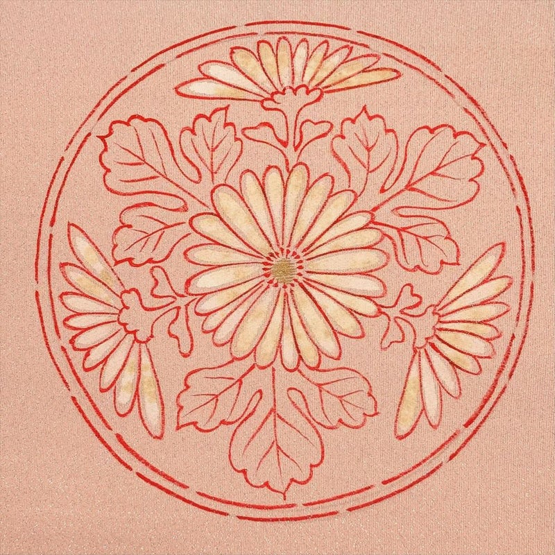 【色柄】ピンク地 カジュアル 銀糸 平仕立て 菊 森口華弘