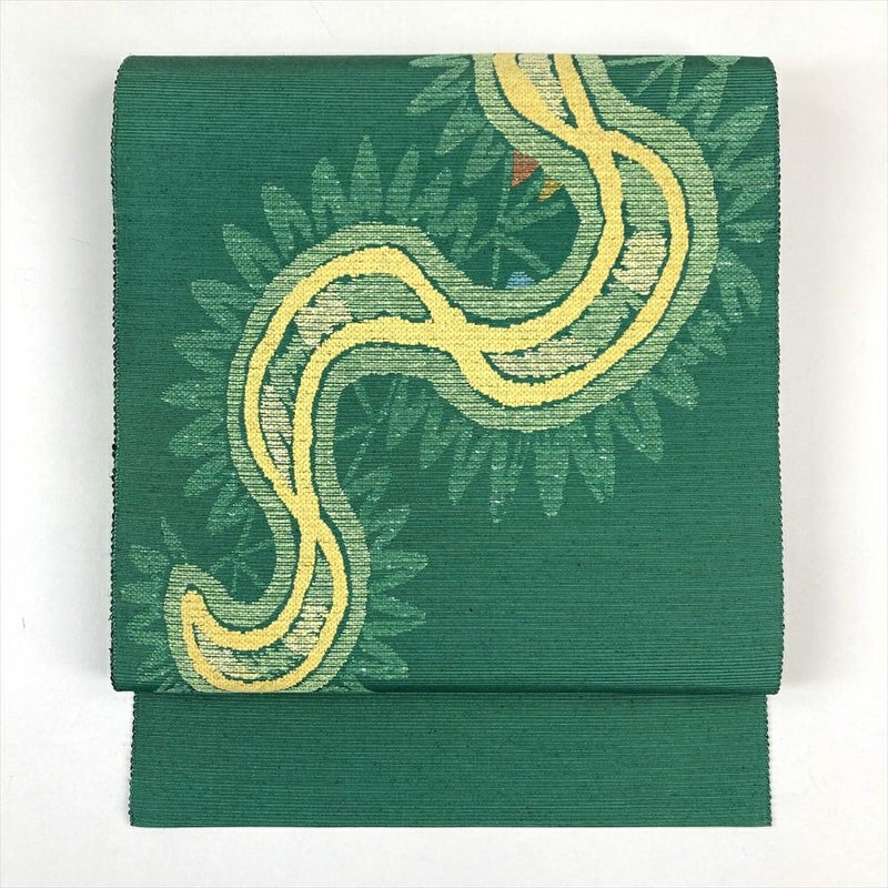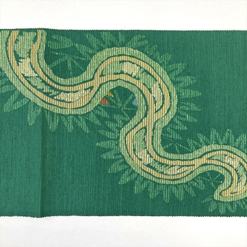 (中古)名古屋帯(八寸) 緑 カジュアル 抽象柄 松葉仕立て