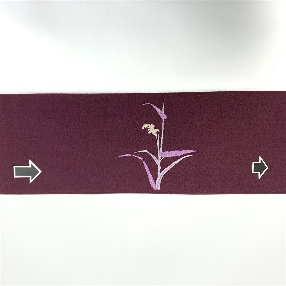(中古)名古屋帯(八寸) 赤紫 名古屋仕立て 縮緬 抽象柄 上品