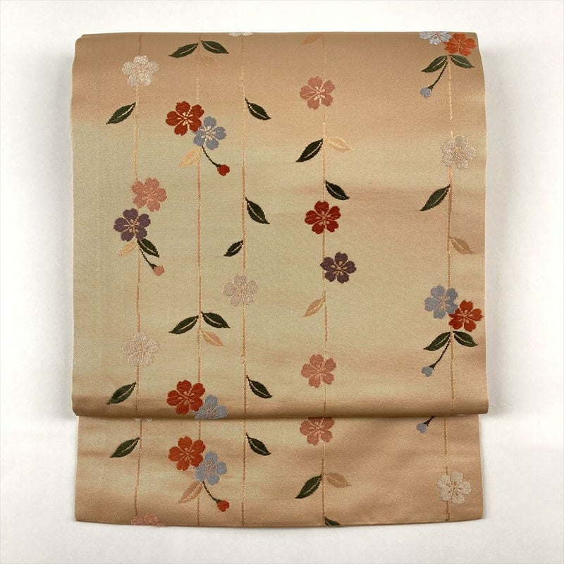 【色柄】ベージュ地 名古屋立て 金糸 小花