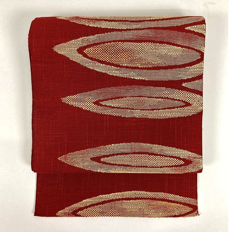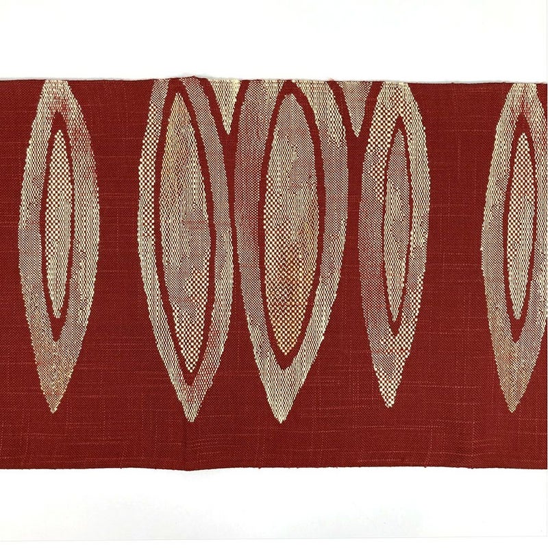 (中古)名古屋帯(八寸) 赤茶地 平仕立て 幾何学模様