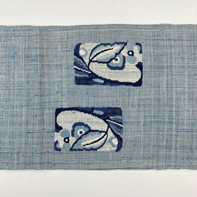 (中古)名古屋帯(八寸) 青 カジュアル 蔓 花 葉 松葉仕立て