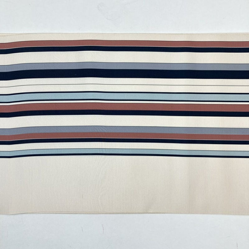 (中古)名古屋帯(八寸) クリーム 水色 紺 カジュアル 間道 松葉仕立て