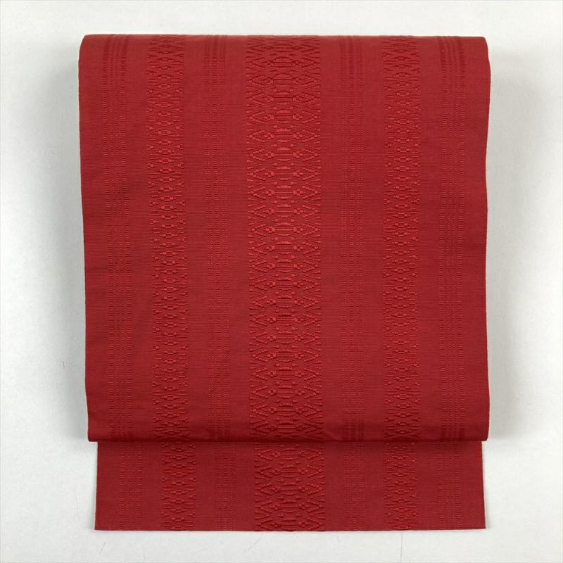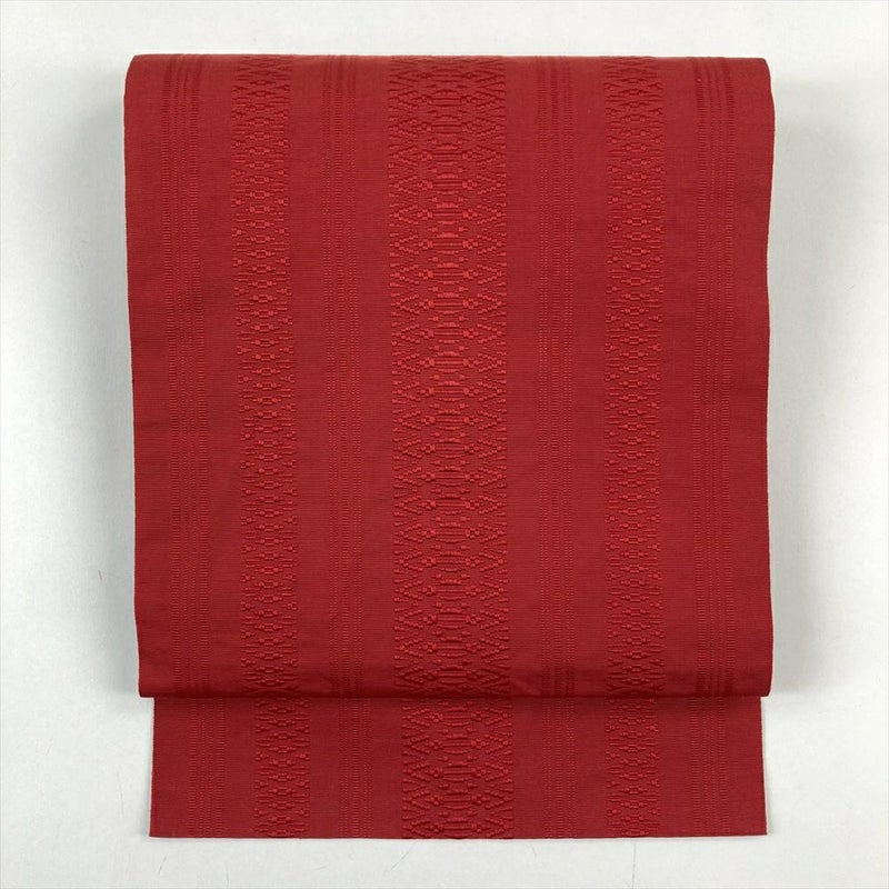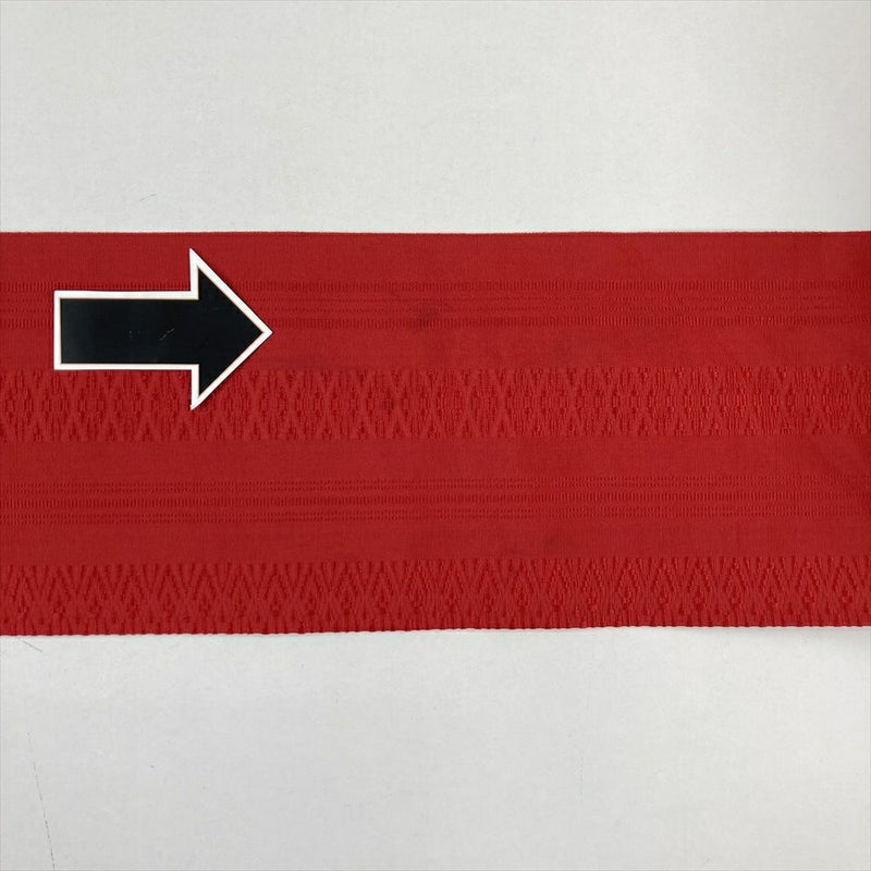 (中古)名古屋帯(八寸) 赤 カジュアル 献上柄 名古屋仕立て