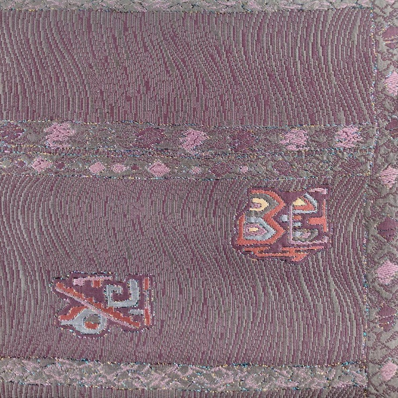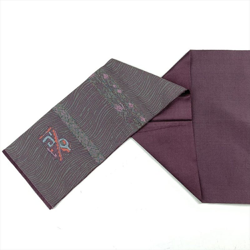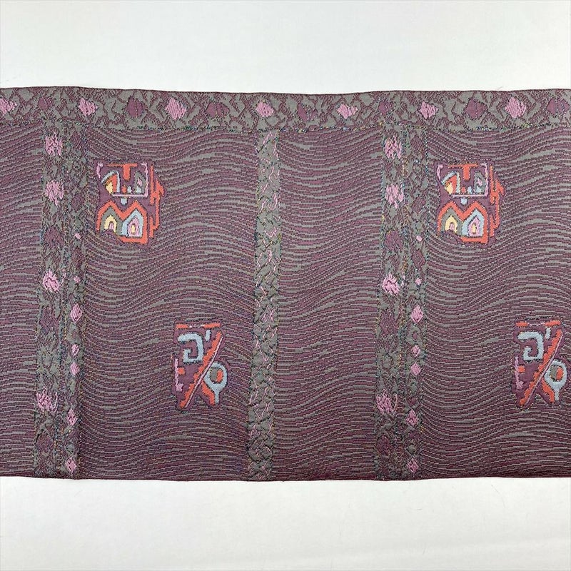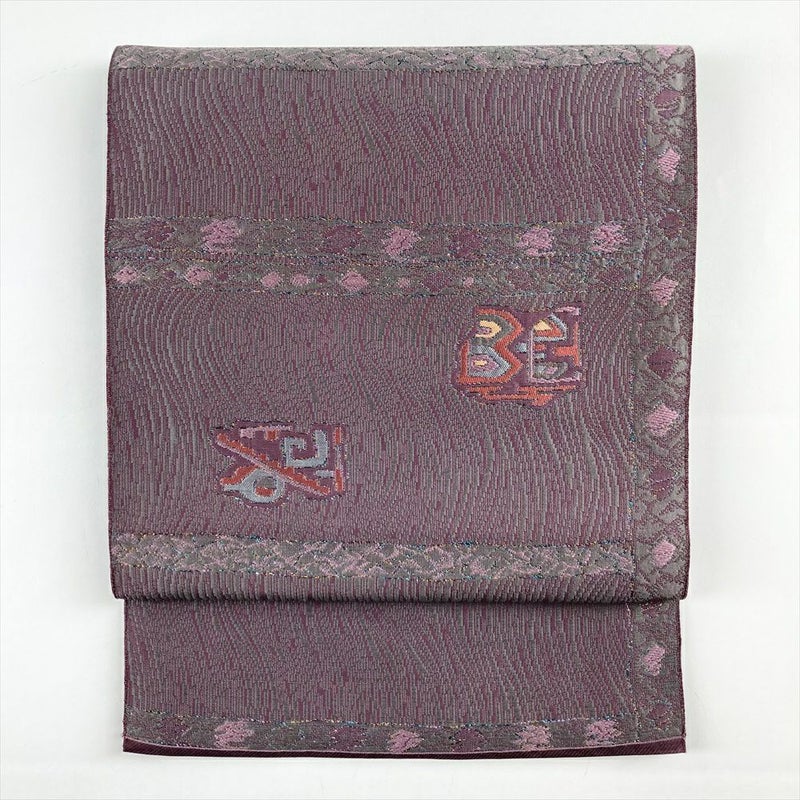 (中古)名古屋帯 紫 カジュアル 松葉仕立て 織り 流線 横段 幾何学柄
