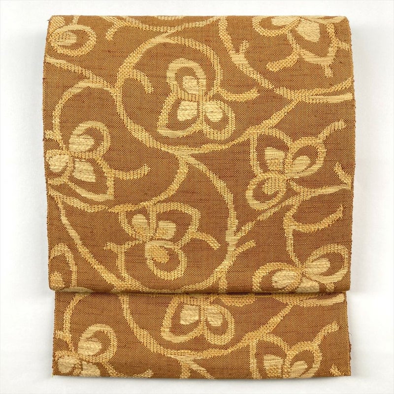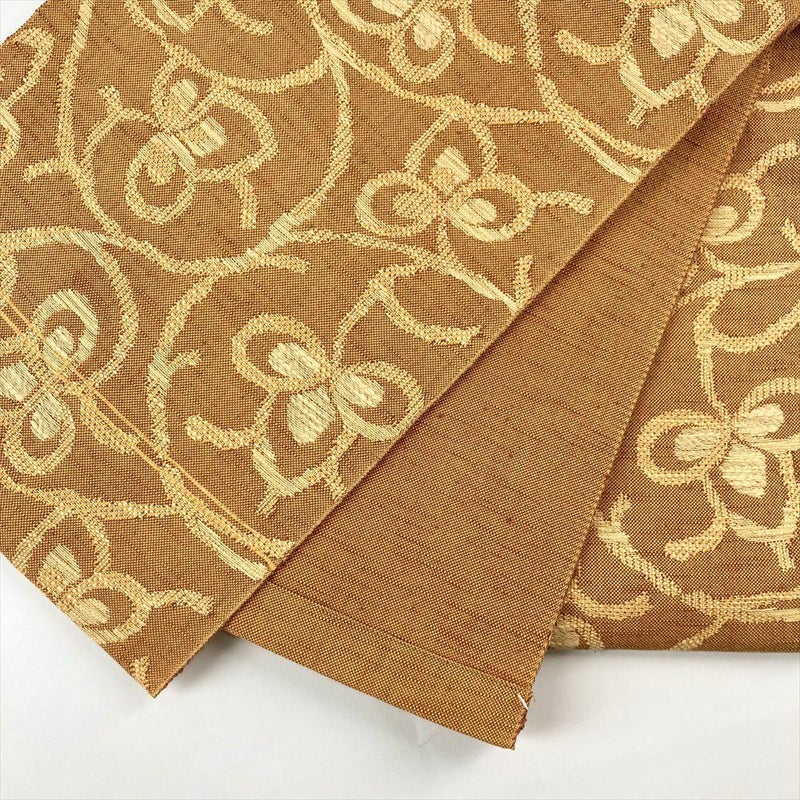 (中古)八寸名古屋帯 黄色 芥子色 カジュアル 八寸袋名古屋仕立て 織り 花唐草