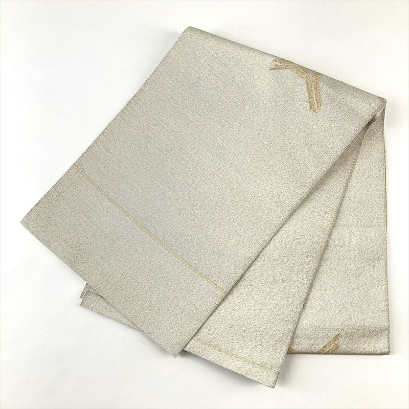 (中古)名古屋帯 銀 セミフォーマル 開き仕立て 金糸 銀糸 つづれ 蜀江華文様 絹