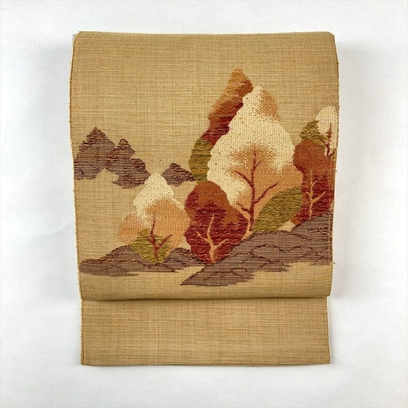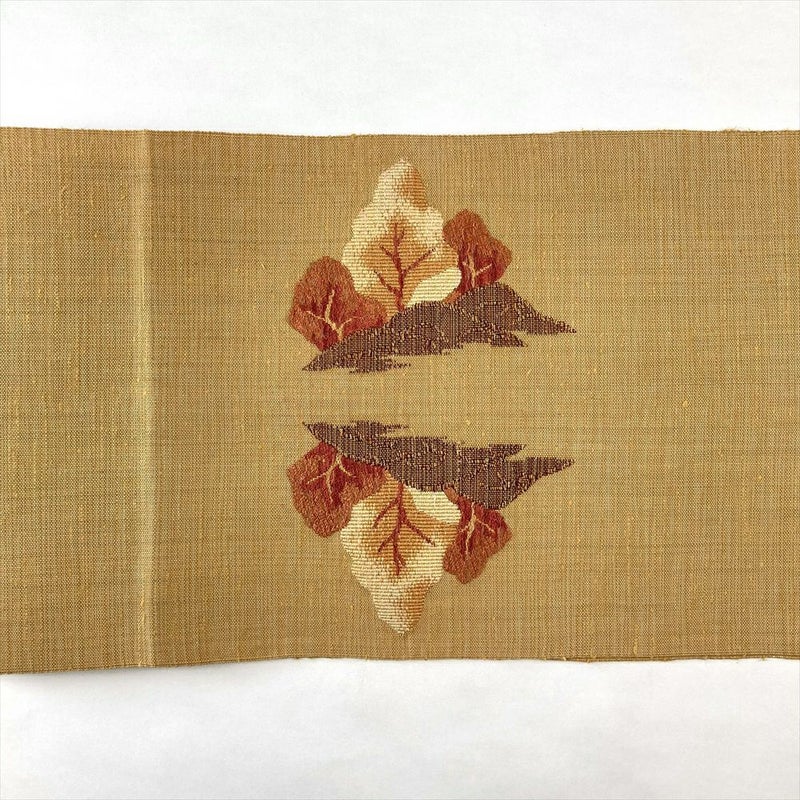 (中古)名古屋帯 黄 カジュアル 平仕立て 織り 紅葉 絹