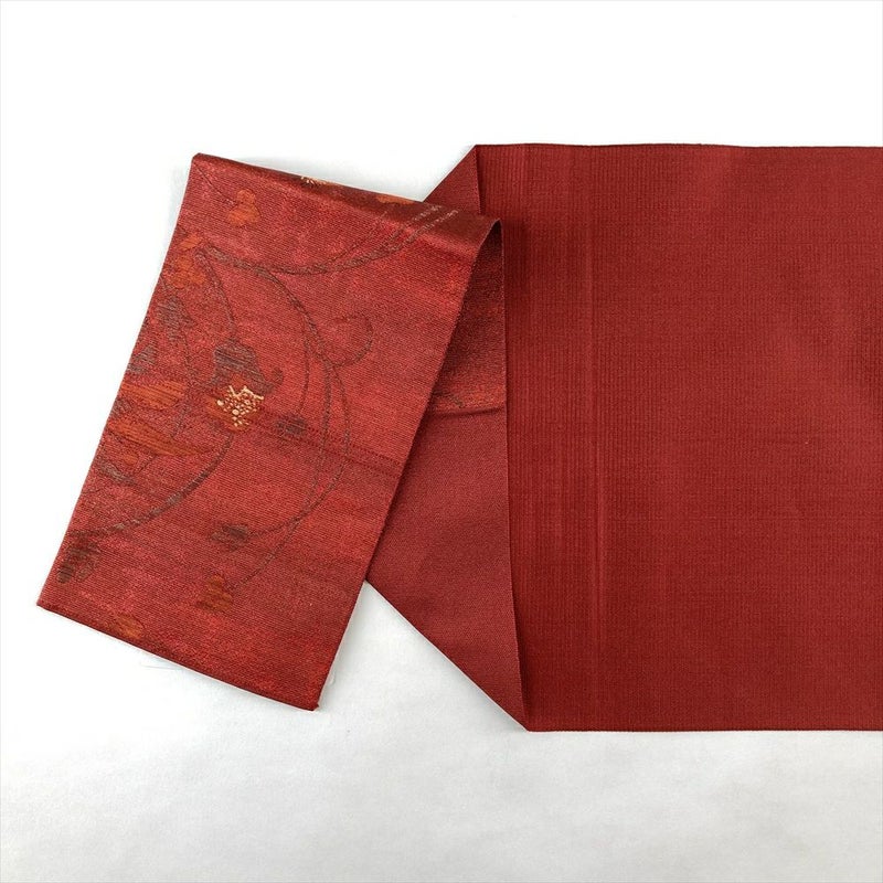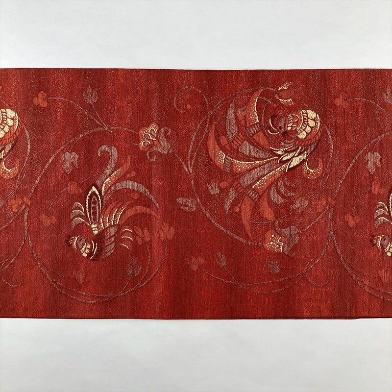 【色柄】赤 カジュアル 花鳥 織り 金糸