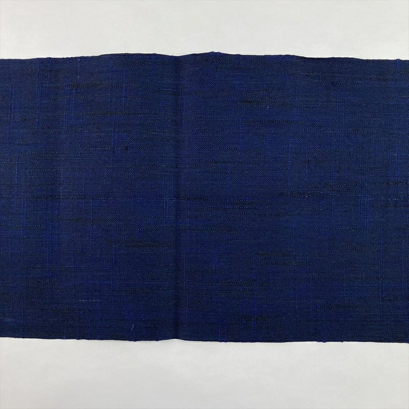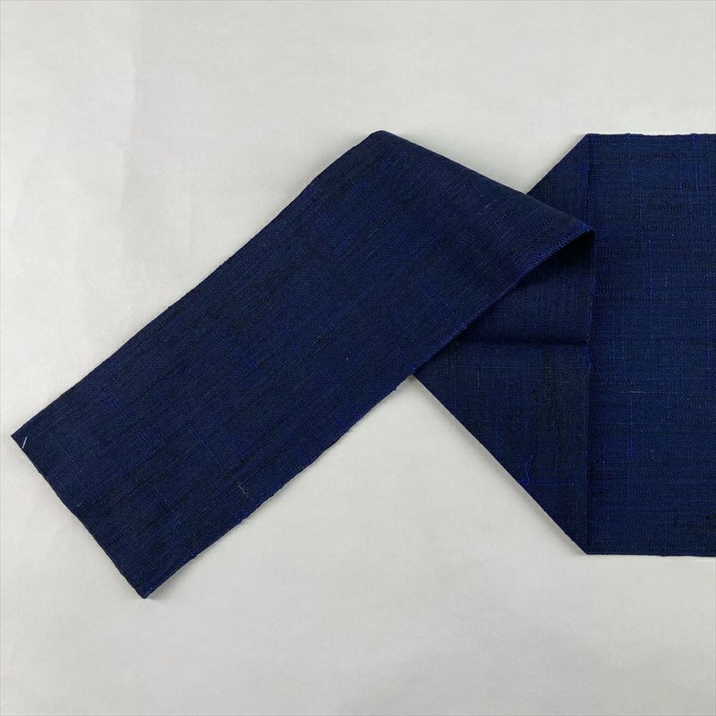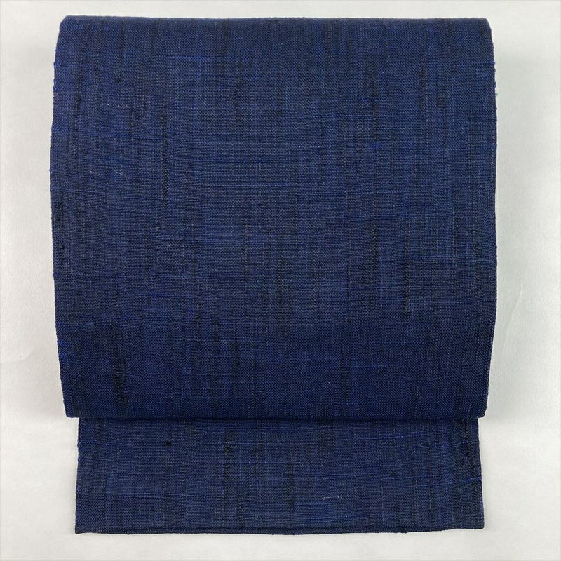(中古)名古屋帯 紺 カジュアル 松葉仕立て 紬 織り 無地 絹
