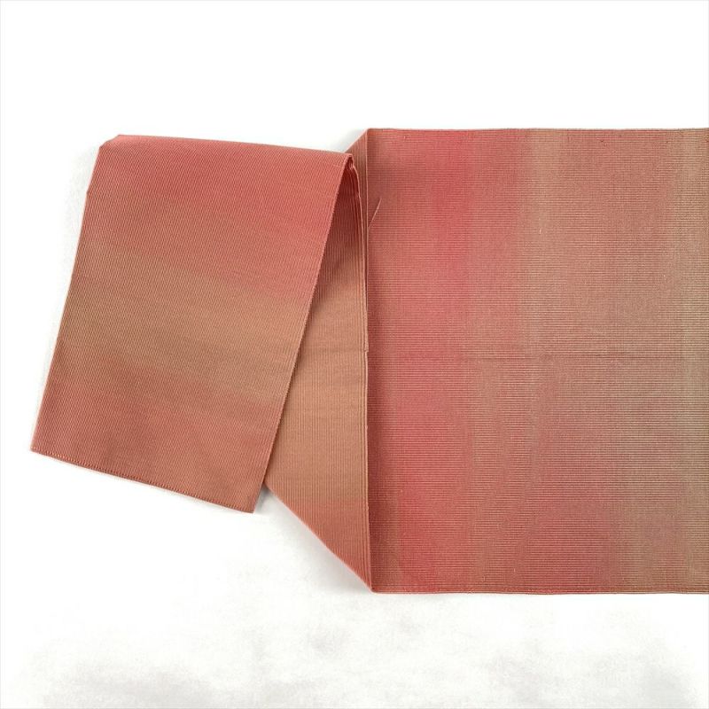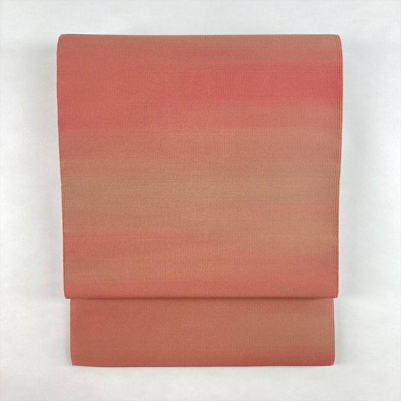 (中古)名古屋帯 紅梅 ピンク カジュアル 松葉仕立て 綴れ織り 無地感 霞 絹