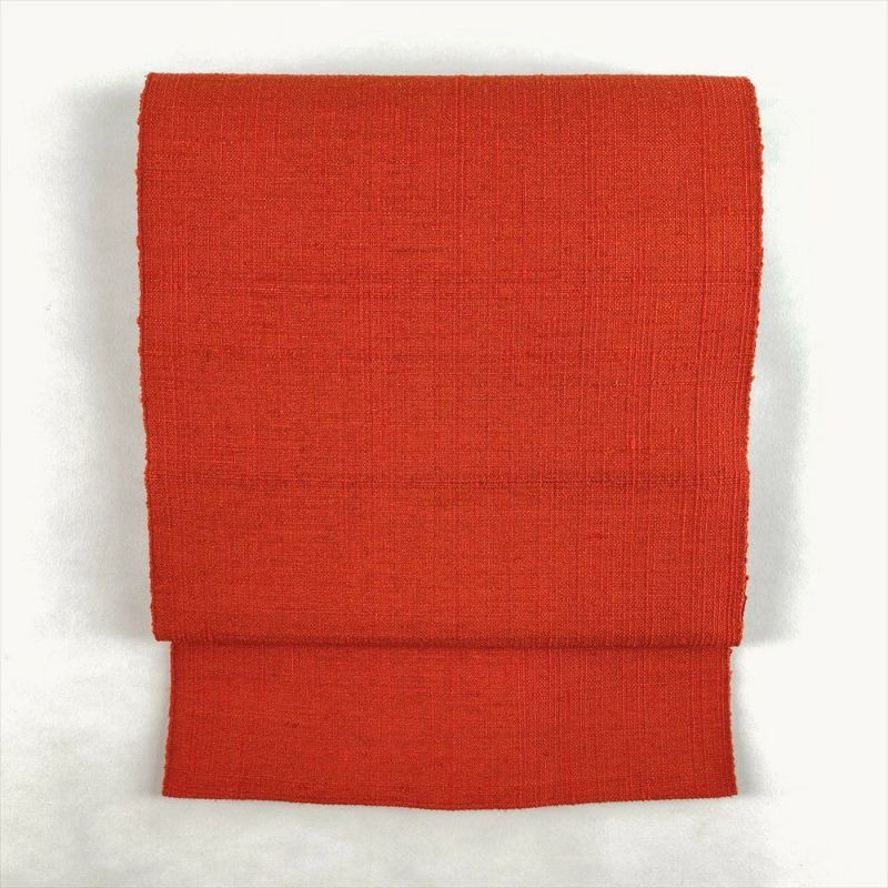 朱赤の紬地に織りで仕上げたワントーンの名古屋帯。