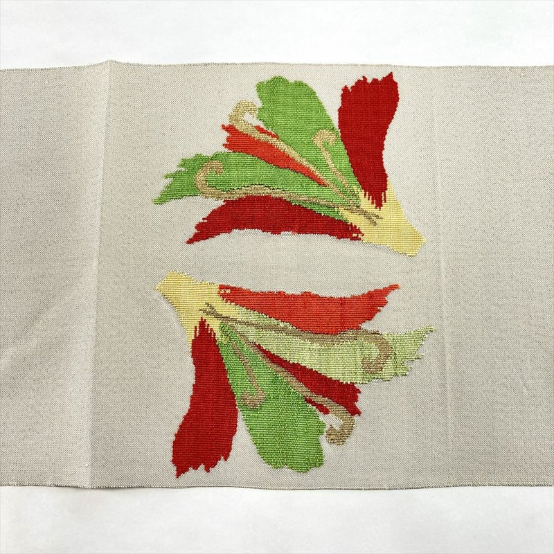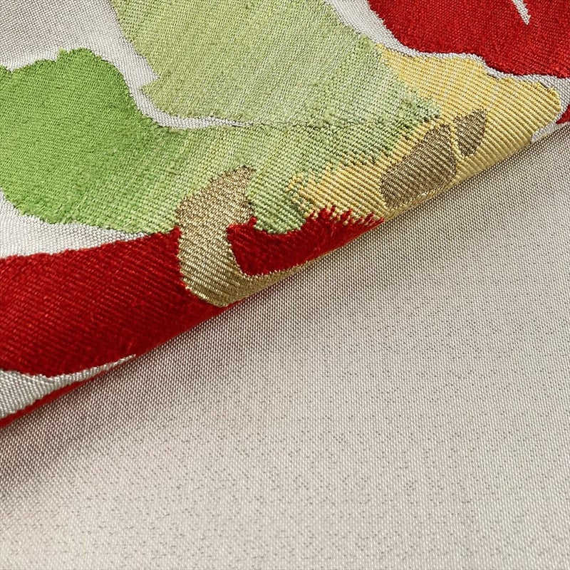 【色柄】アイボリー カジュアル 大輪の花 織り 金糸 色糸