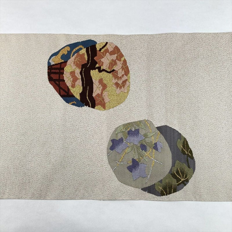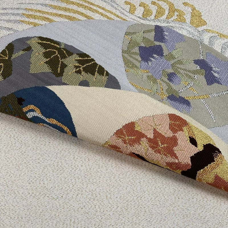 【色柄】白茶 ベージュ カジュアル 扇面 波 綴れ織 金糸