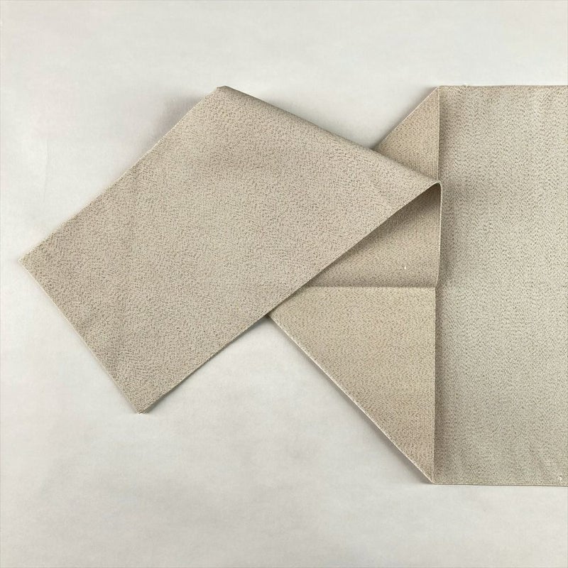 (中古)名古屋帯 白茶 ベージュ カジュアル 松葉仕立て 綴れ織 金糸 扇面 波 絹
