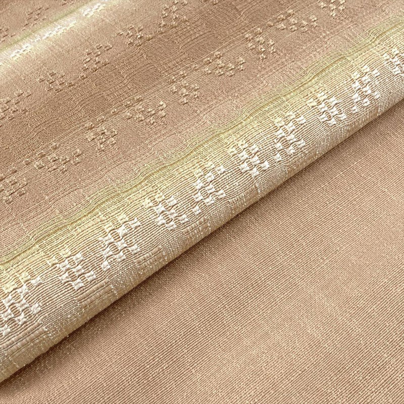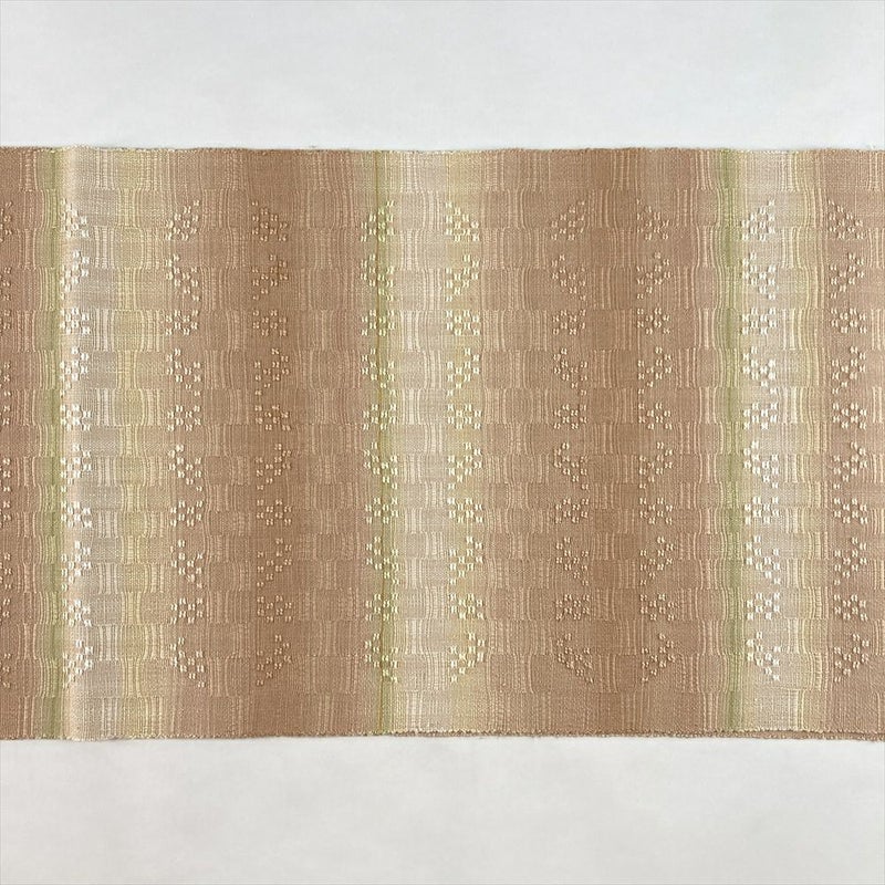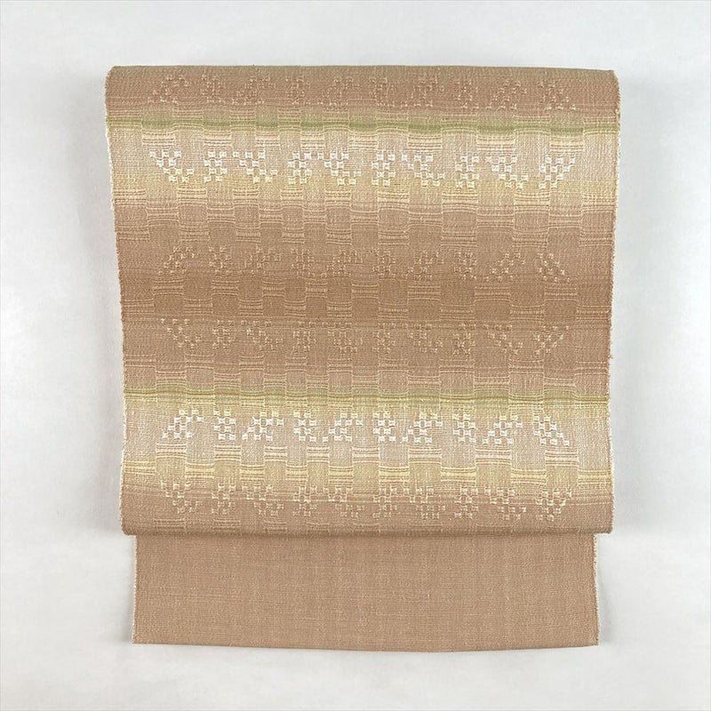 (中古)名古屋帯 薄茶 ベージュ カジュアル 松葉仕立て 首里織 幾何学 絹