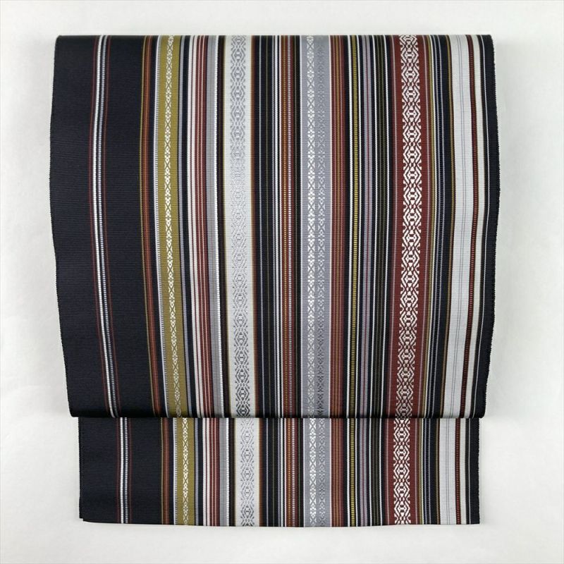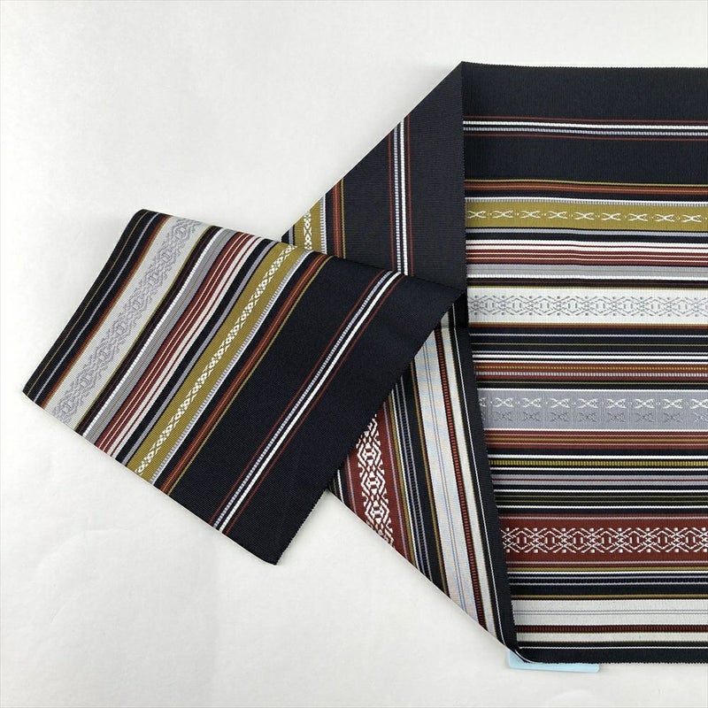 (中古)名古屋帯 黒 カジュアル 松葉仕立て 博多織 献上柄 絹