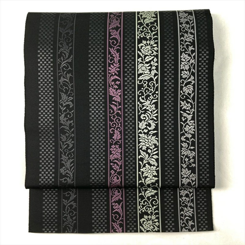 (中古)名古屋帯 黒 カジュアル 松葉仕立て 博多織 唐花 絹