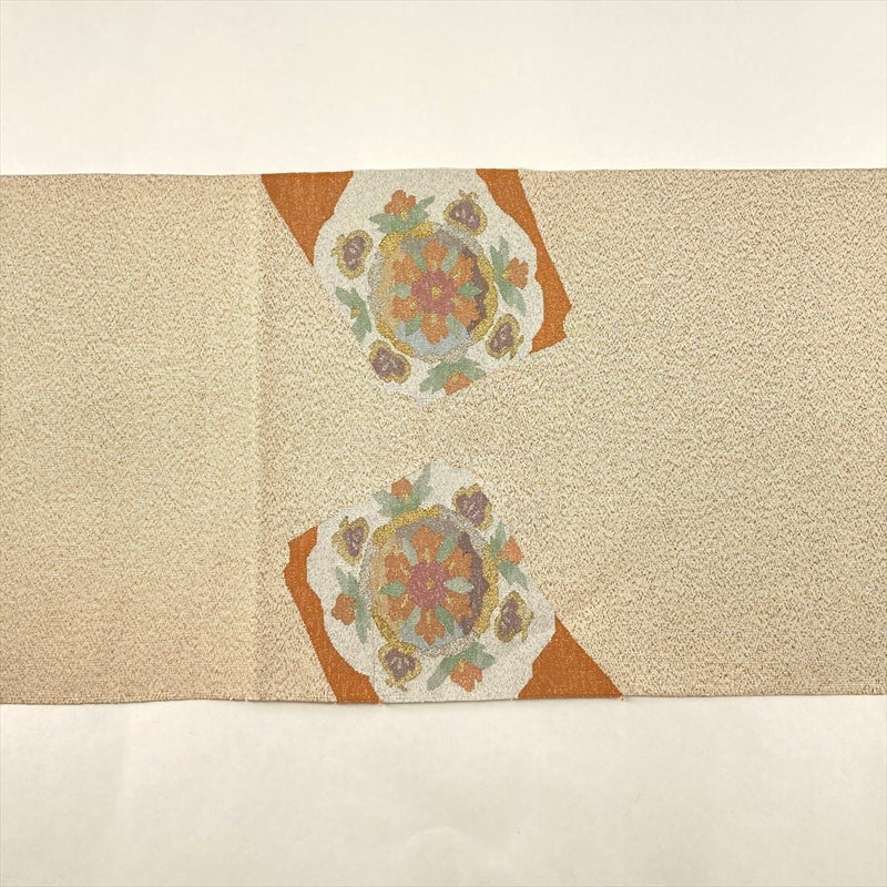 (中古)名古屋帯 白 金 セミフォーマル 松葉仕立て 綴れ織り 花 絹