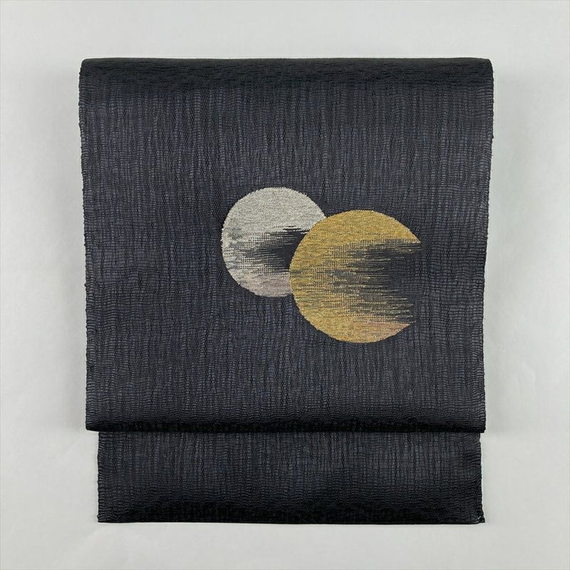 (中古)名古屋帯 チャコールグレー 濃グレー カジュアル 名古屋仕立て 織り 月光 絹