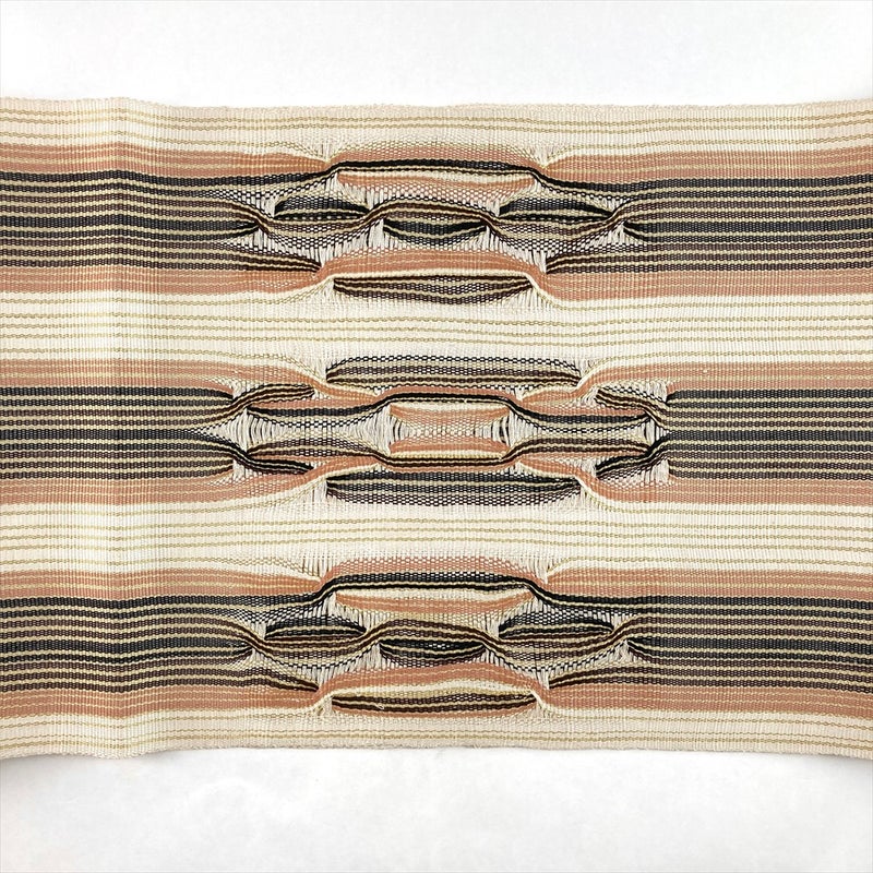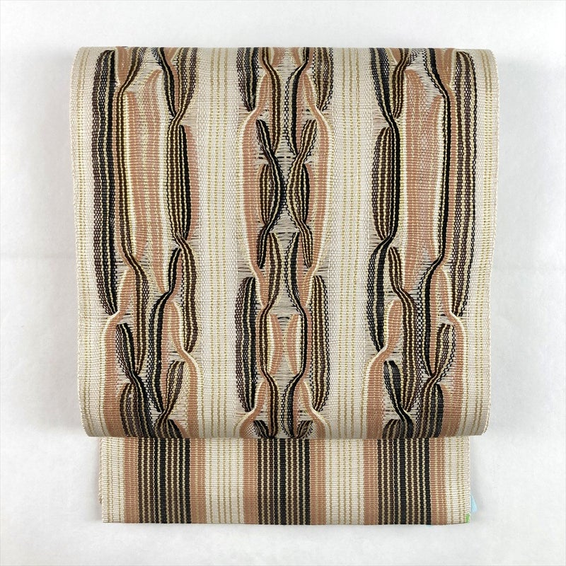 (中古)名古屋帯 生成 セミフォーマル 松葉仕立て 織り 組織 縦縞 絹