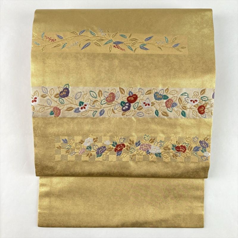 【色柄】金 カジュアル セミフォーマル 横段 橘 牡丹 引き箔