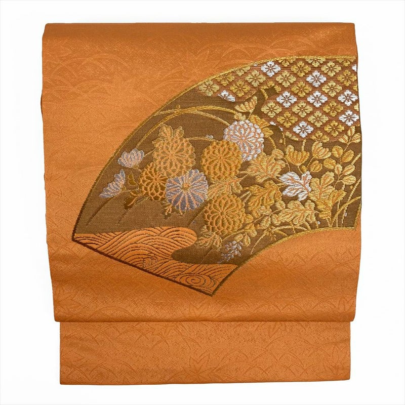 【色柄】オレンジ地 名古屋仕立 金銀糸 扇面 菊