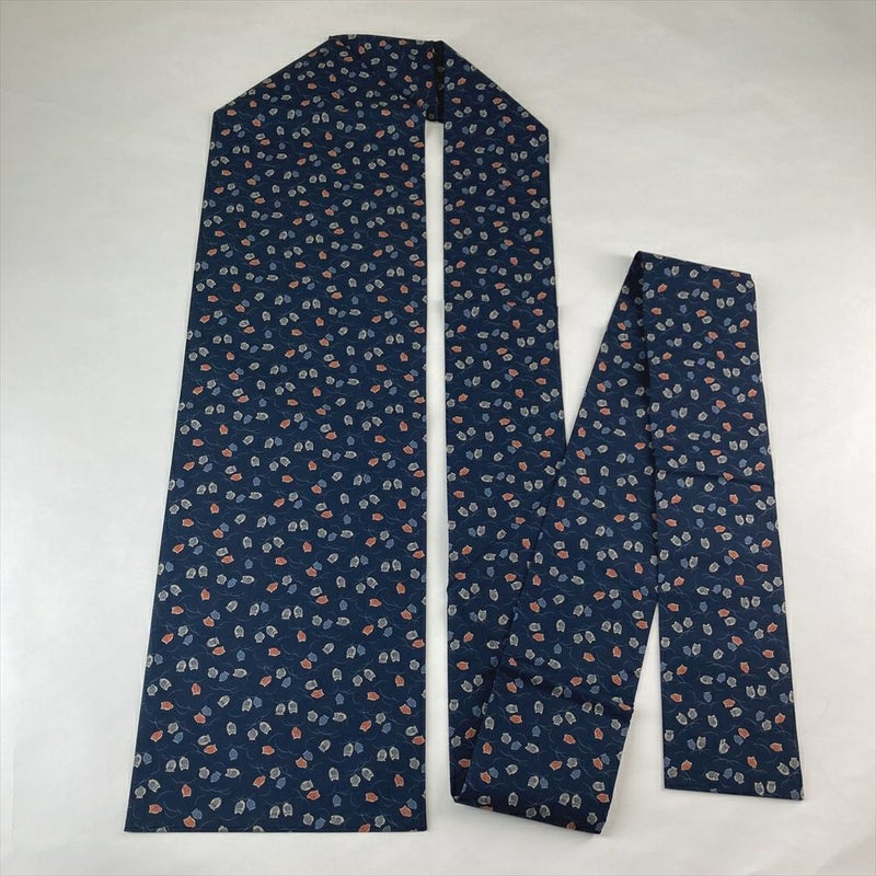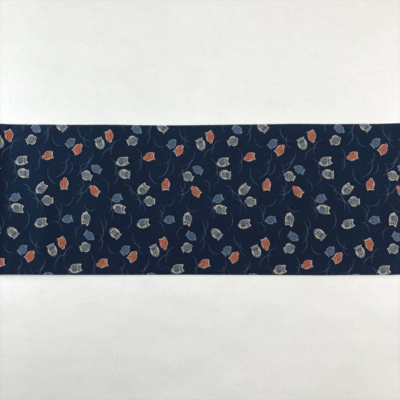 (中古)名古屋帯 紺 カジュアル 名古屋仕立て 染め ふくろう文様 綿