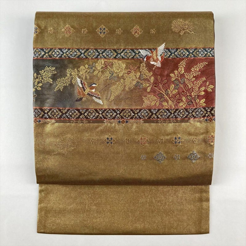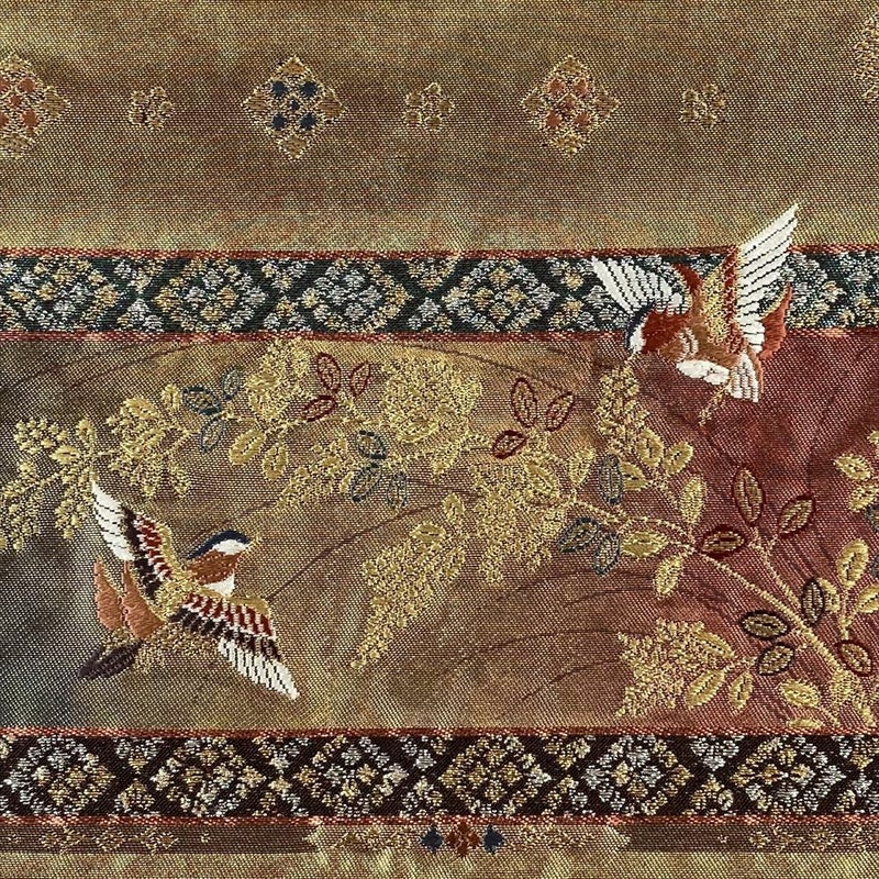 【色柄】金色 カジュアル 萩 対の鳥 織り