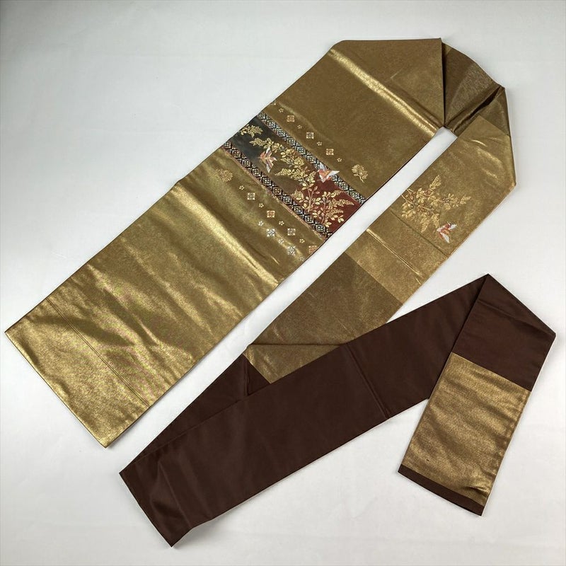 (中古)名古屋帯 金色 カジュアル 名古屋仕立て 織り 萩 対の鳥