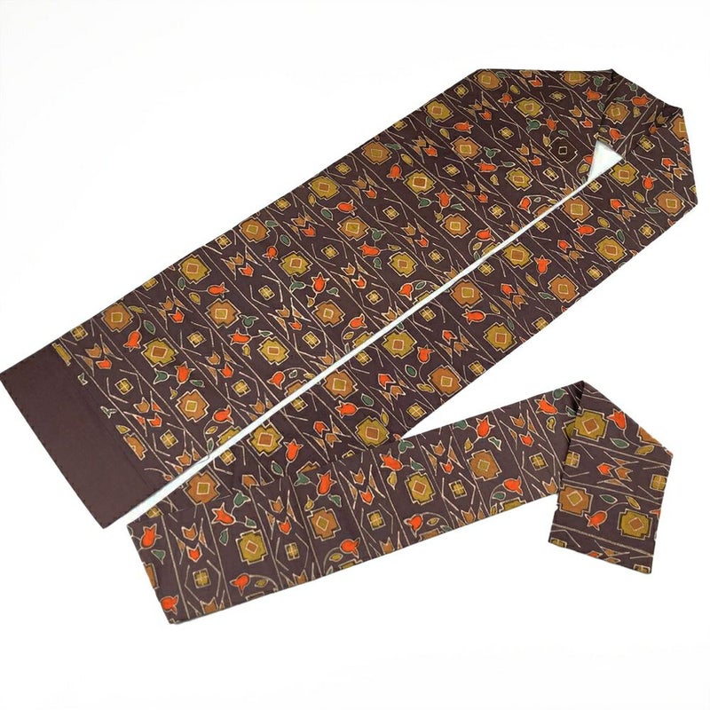 【色柄】焦げ茶 カジュアル 幾何学柄 織り ろうけつ染め調
