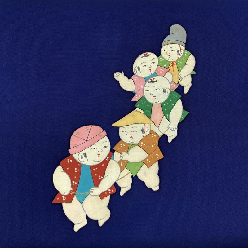 【色柄】青紫 カジュアル 金彩 遊ぶわらべ 塩瀬 染め