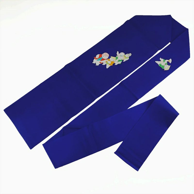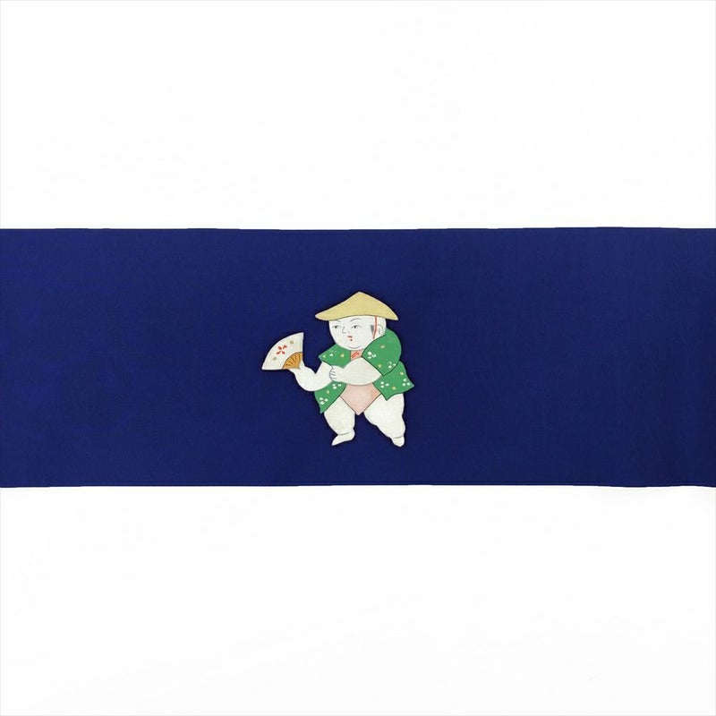 (中古)名古屋帯 青 カジュアル 名古屋仕立て 塩瀬 染め 金彩 遊ぶわらべ