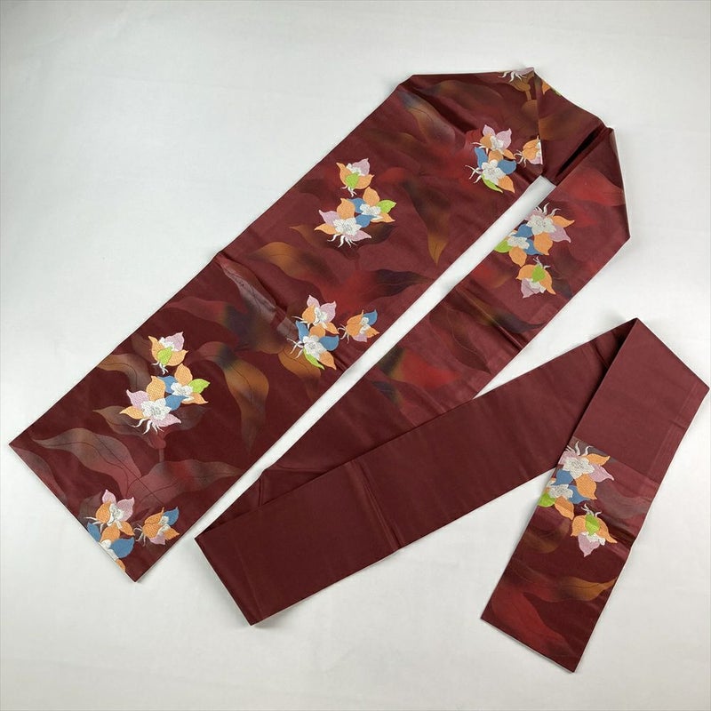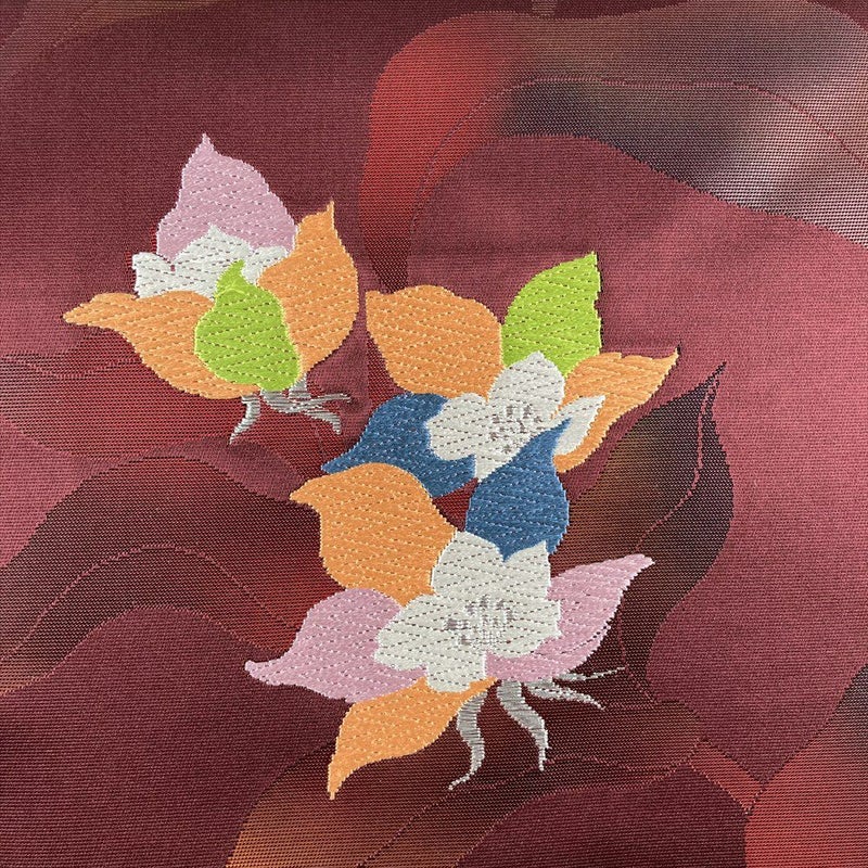 【色柄】赤 臙脂色 カジュアル 花葉 金糸 色糸