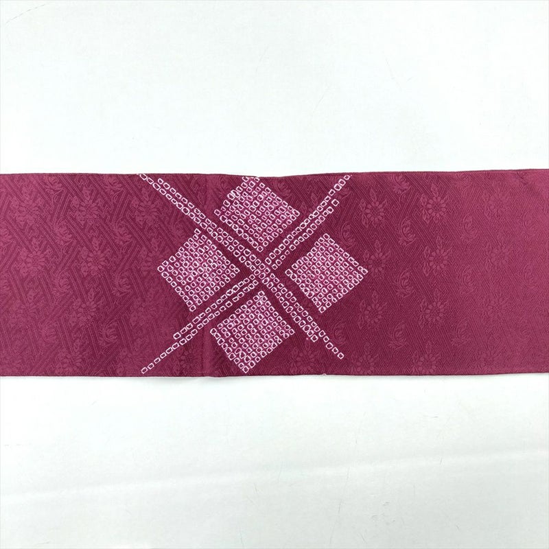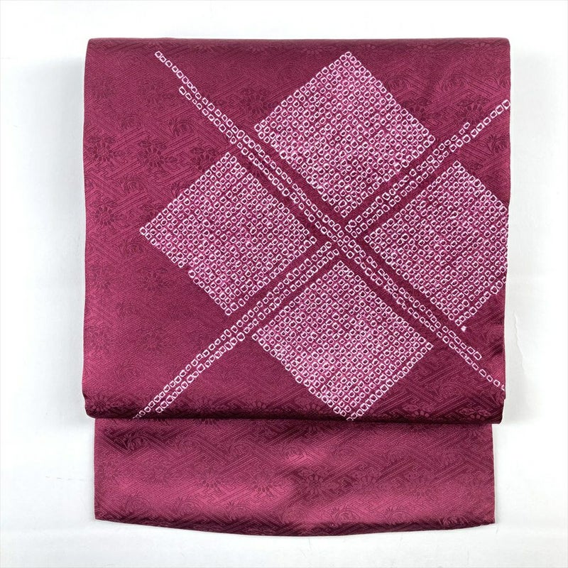 (中古)名古屋帯 赤紫 カジュアル 名古屋仕立て 染め 地紋織り 絞り 菱