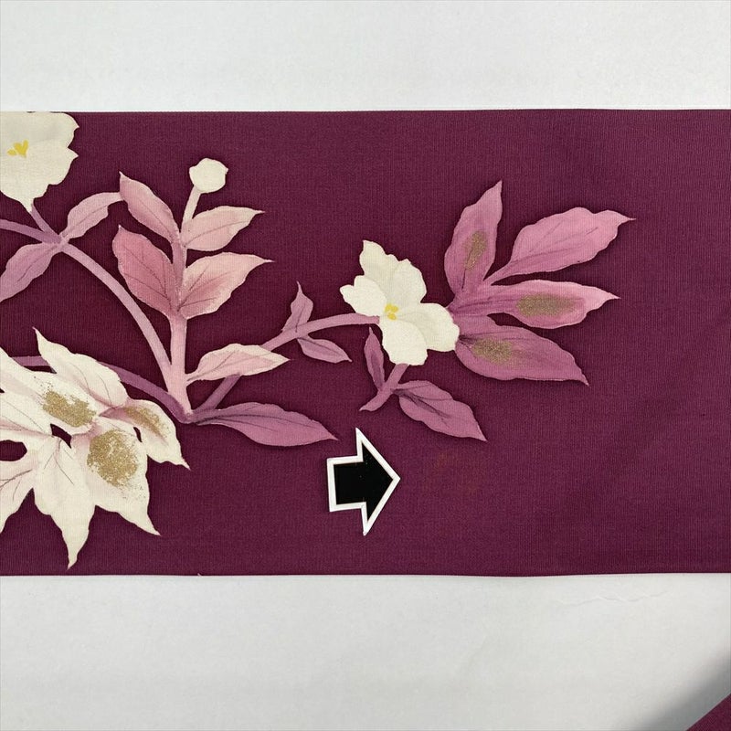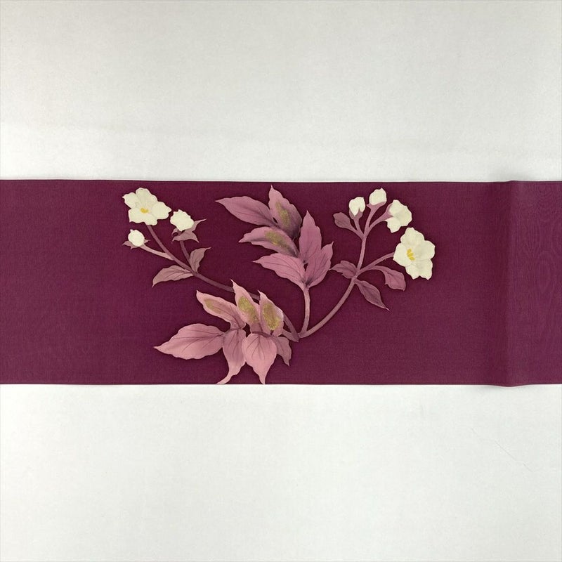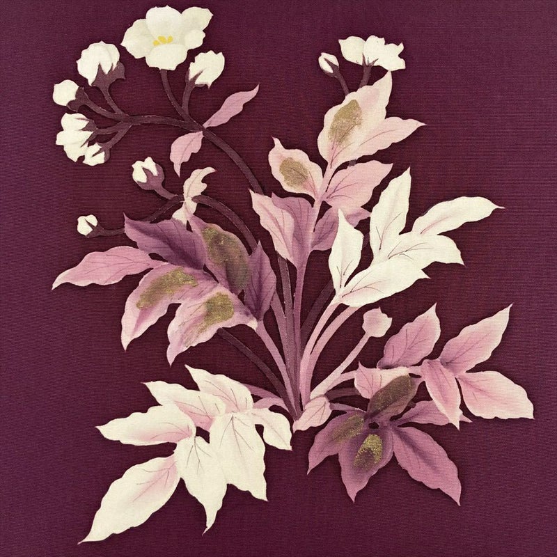 【色柄】紫 小豆色 カジュアル 花葉 塩瀬 染め 金彩