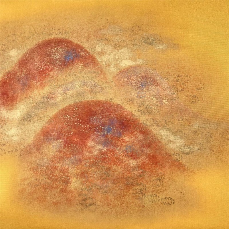 【色柄】山吹色 オレンジ カジュアル 金彩 霞 山並み 塩瀬 染め