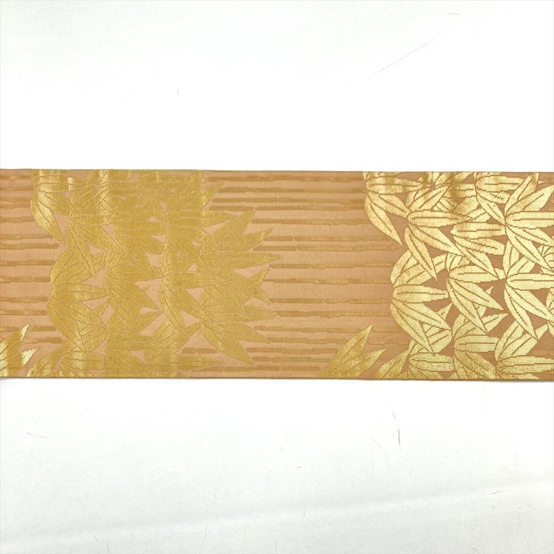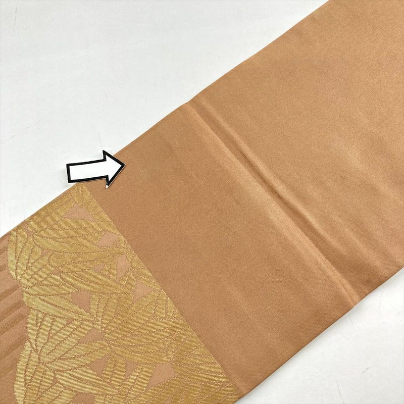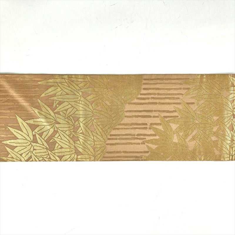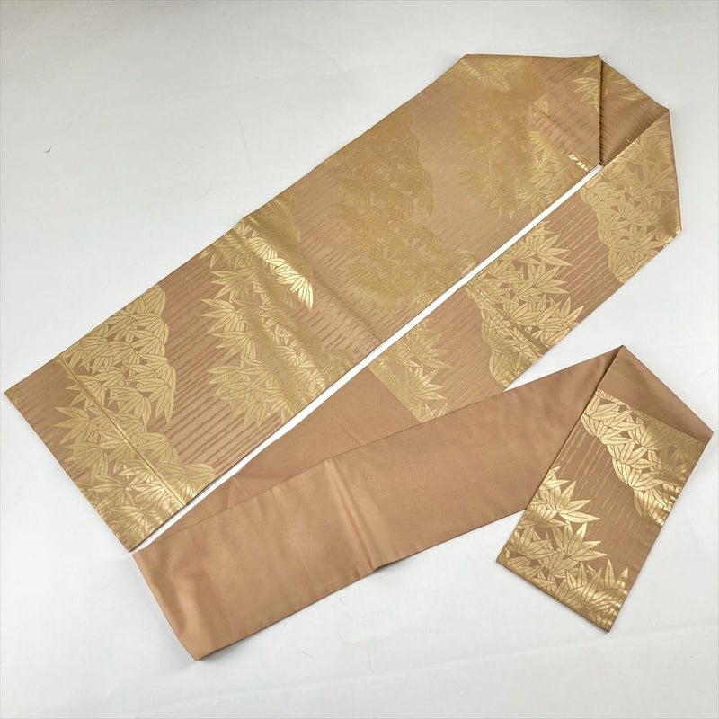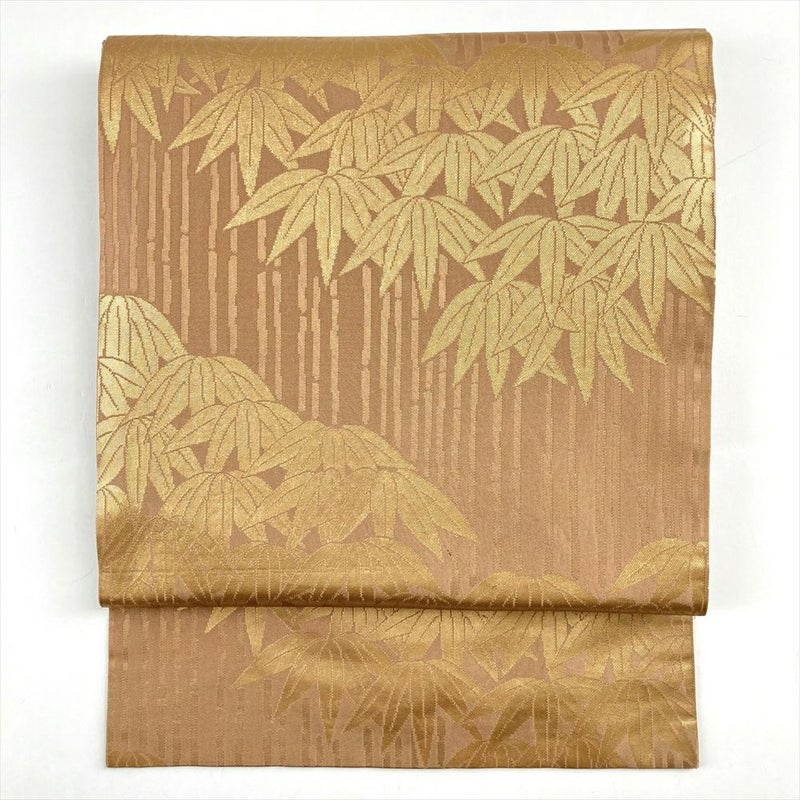 (中古)名古屋帯 薄茶 セミフォーマル カジュアル 名古屋仕立て 織り 切箔 竹林