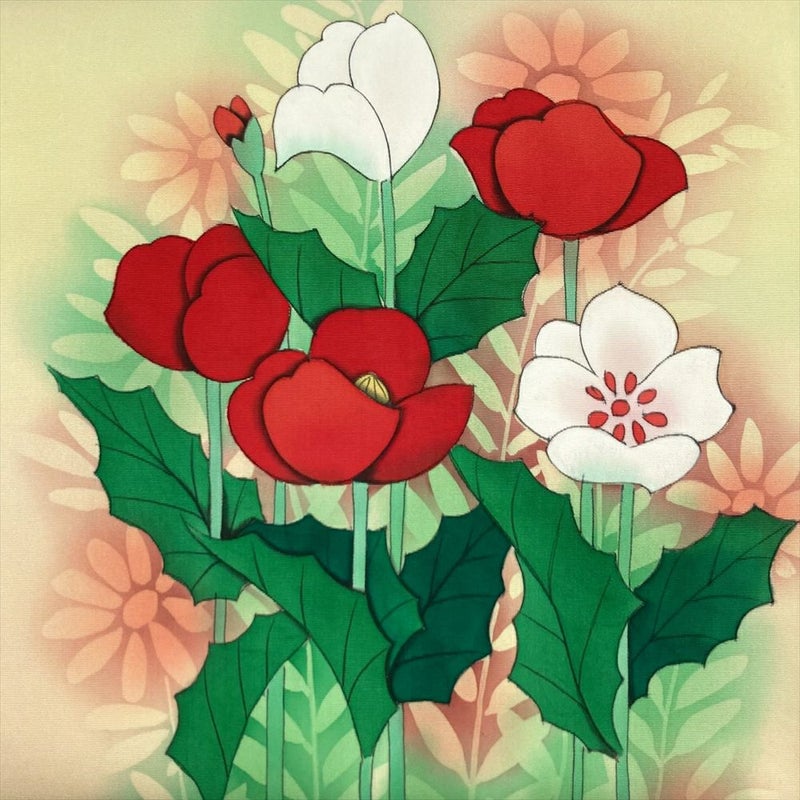 【色柄】薄黄色 カジュアル 花葉 グラデーション 塩瀬 染め
