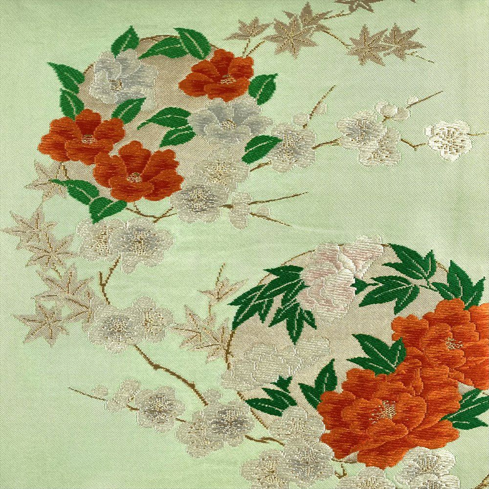 【色柄】浅緑 カジュアル 花の丸 梅 紅葉 牡丹 椿 織り