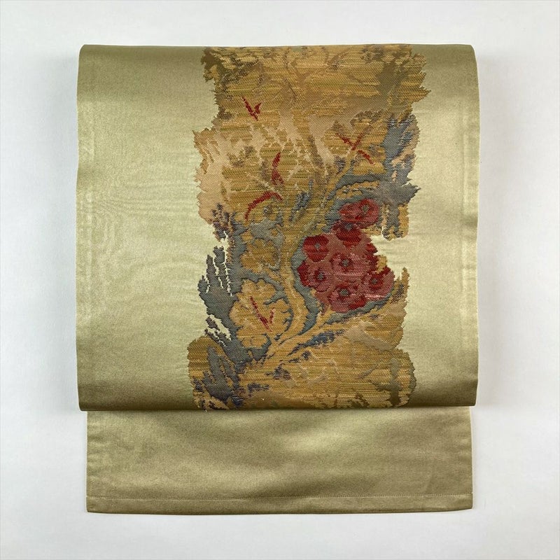 正絹 名古屋帯 【 魅惑の金緑、アールヌーボーの息吹】