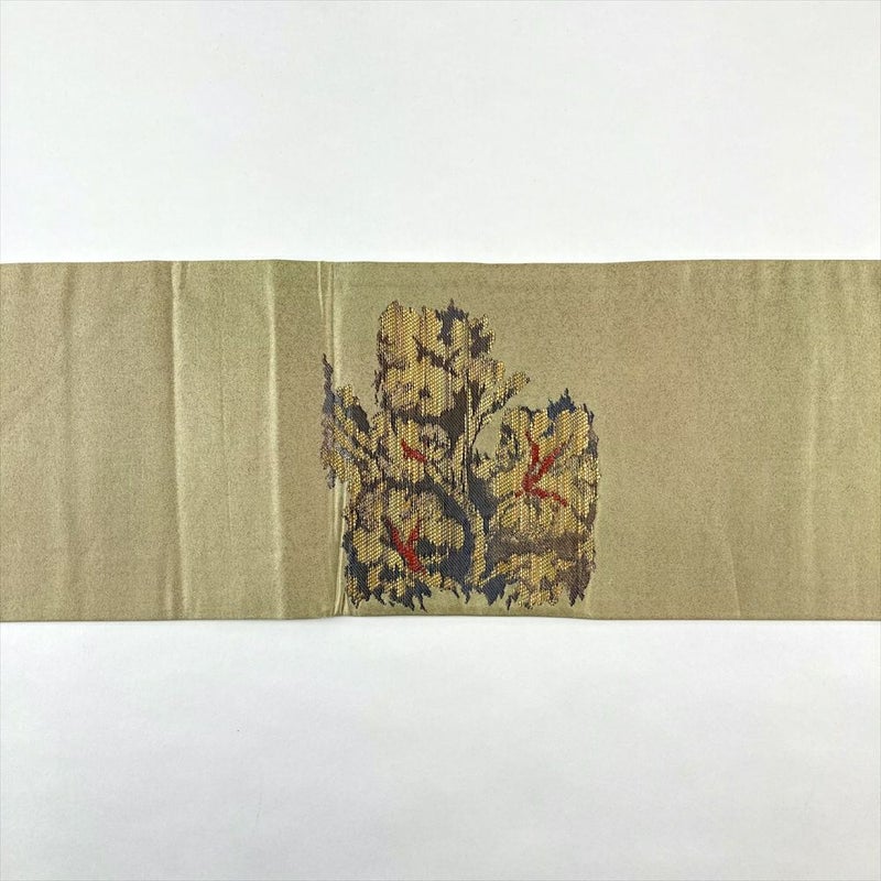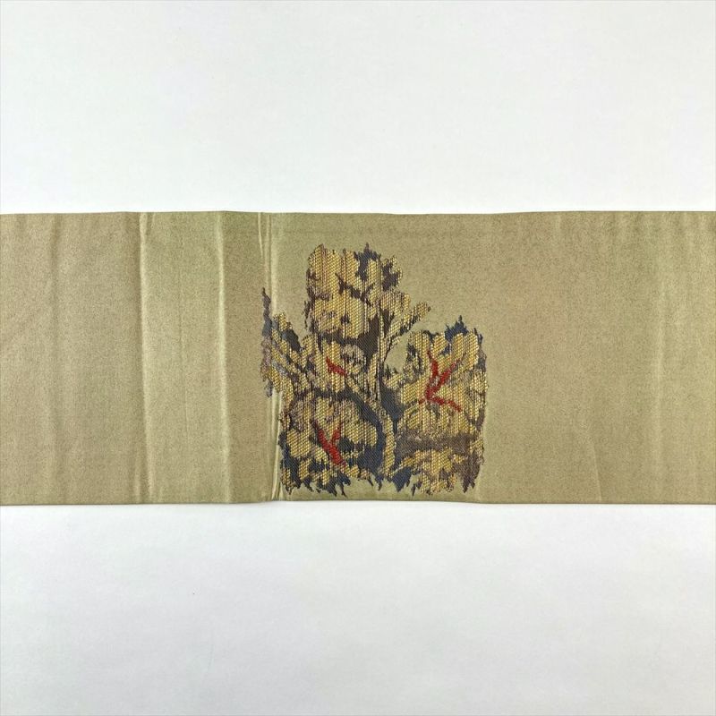 見る者を惹きつける、魅惑的な金緑色が美しい正絹 名古屋帯のご紹介です。