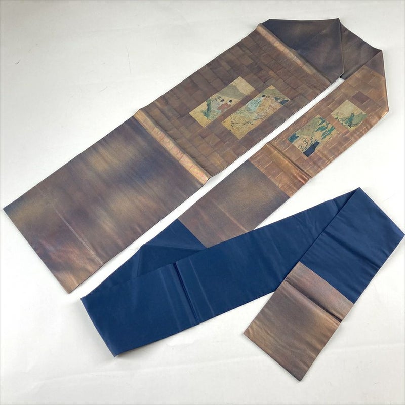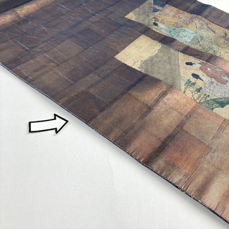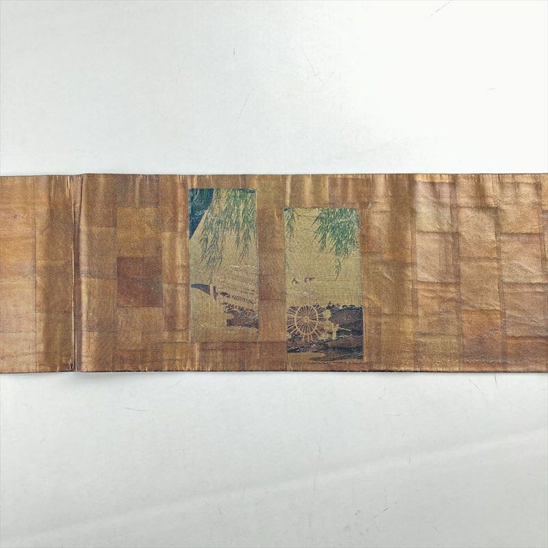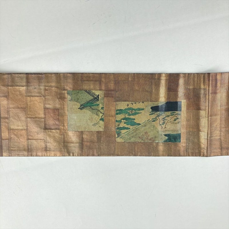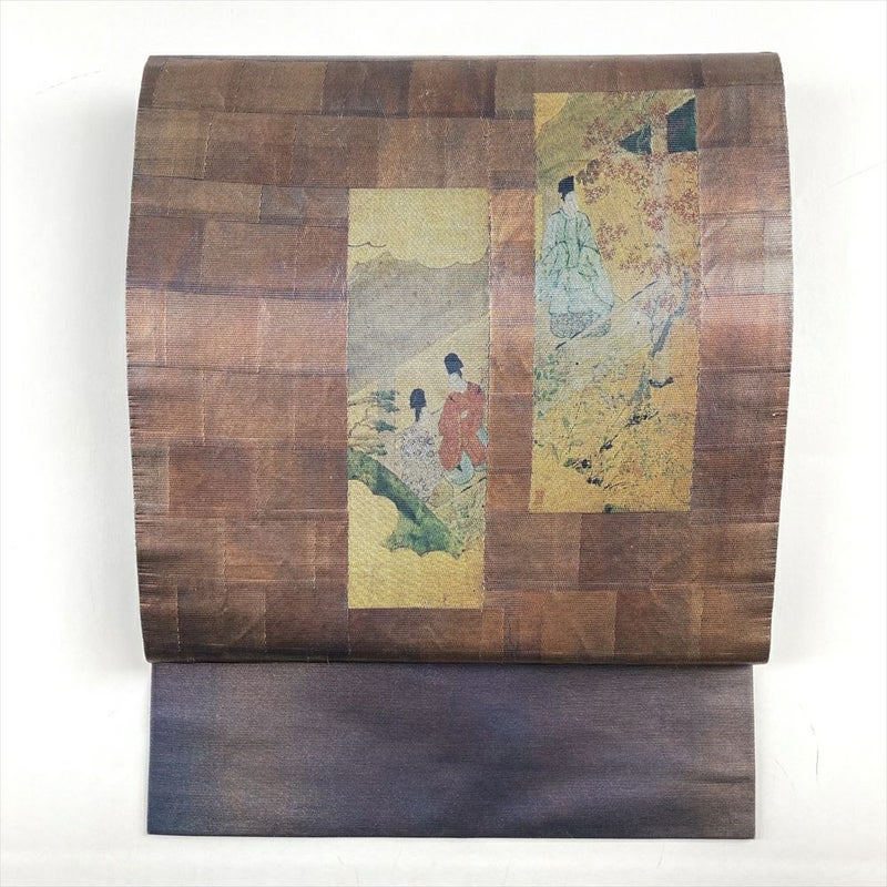 (中古)名古屋帯 銅 セミフォーマル カジュアル 名古屋仕立て 織り うるし箔調 平安絵巻